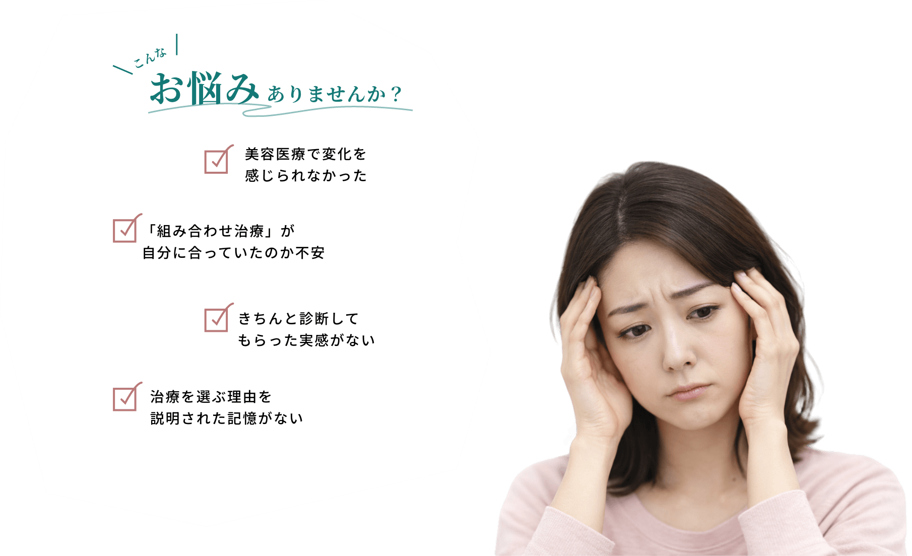 たるみ・シミ・赤みといった悩みも骨格・筋肉・脂肪・皮膚のバランスによって現れ方は一人ひとり異なります。